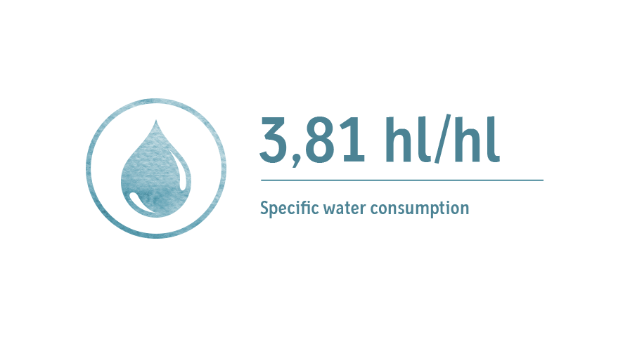 In our brewery we do our best to continuously optimise the use of raw materials. We are particularly proud of our specific water consumption per hectolitre of beer. With an industry average of approx. 6 hl/hl, we only need 3.81 hl/hl – which makes us one of the best.