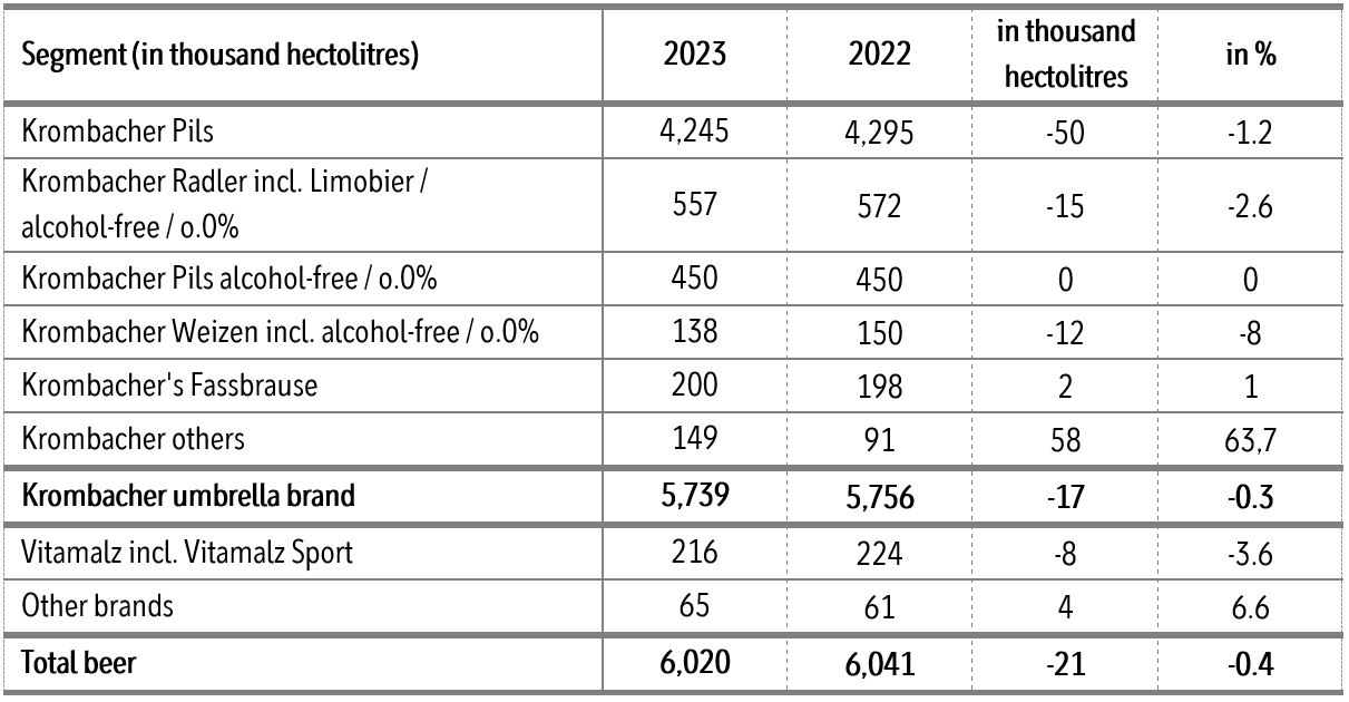 The wide range of varieties under the Krombacher umbrella brand also provides important impetus. For example, Krombacher NaturRadler, which was launched in 2022, performed very well last year and continued to gain significant sales.