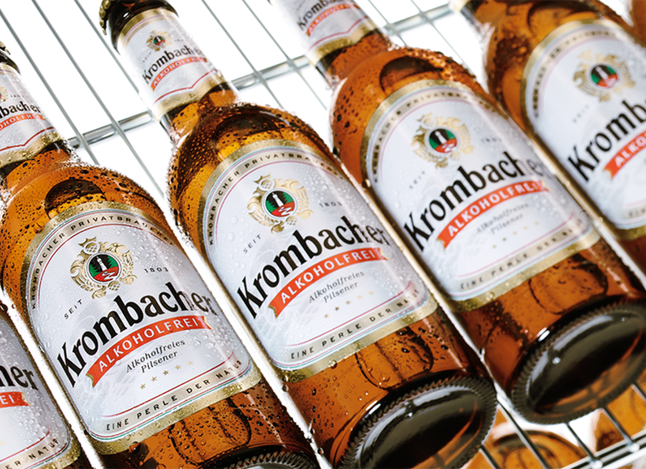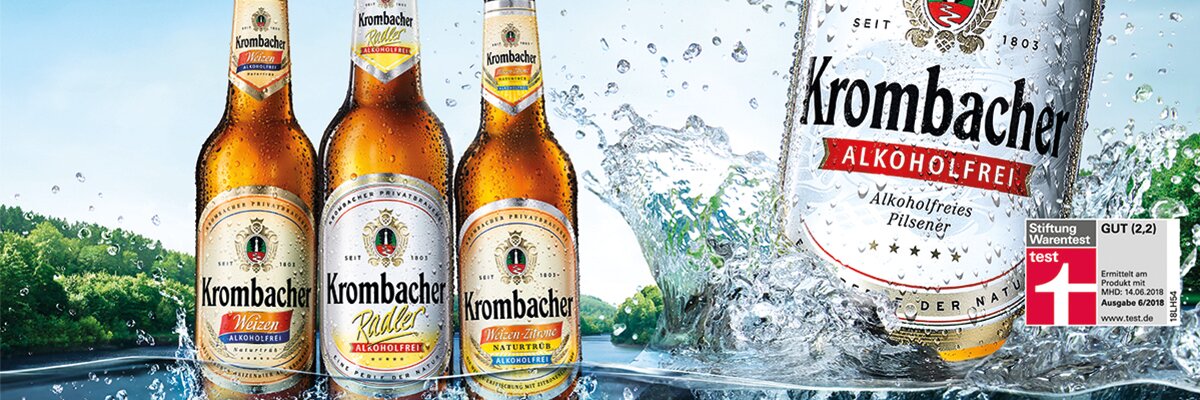 Krombacher offers a non-alcoholic version of every relevant alcoholic beverage from its product range. The non-alcoholic range offers a flavoursome alternative to alcoholic products. The products have the full-bodied genuine beer taste, reduced calories and isotonic benefits. Krombacher non-alcoholic is popular with amateur athletes and fitness fans as a refreshing drink to enjoy after exertion on the track and field.